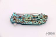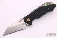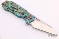 This Half Track from Hinderer Knives features a stonewash finished wharncliffe blade with swedge, fullers, notched thumbrest and flipper. The handle is comprised of an anodized titanium frame complemented by a black G-10 scale. Titanium clip is positioned for tip up, right hand carry. Excellent condition.  Comes with original box, extra hardware and papers.