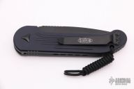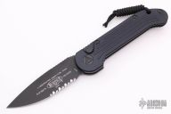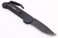 This LUDT auto by Microtech Knives has a black blade with a partially serrated edge and a black aluminum frame with all black hardware. Stainless steel clip. Dated 09/2020 and serial number 19379. Comes with original box and papers. Excellent condition.