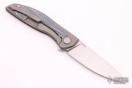 This Neon NL by Shirogorov features tumbled blade with notched thumbrest and flipper. The handle has a tumbled titanium frame with black/white linen micarta inlays. Comes with box and papers. Rides on MRBS. Excellent condition.