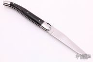 This Forge de Laguiole® folding knife with a handle in elegant dark Horn has been hand-made in our manufactory in Laguiole, France, according to the knife-making tradition dating back to 1828. It has two stainless steel bolsters that protect the handle during daily use.