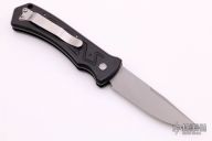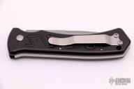 This SERT side opening automatic by Al Mar Knives features a fine bead blasted blade.  The handle is composed of black aluminum and features a tumbled tip up steel pocket clip.  Light scratches are visible on the blade and handle otherwise the knife is in good working condition.