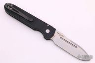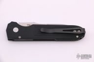 This Invictus by Pro-Tech is a Prometheus Design Werx design, it features a satin finished and tumbled blade with notched thumbrest and fullers. The handle has a black aluminum frame with a black stainless steel tip up clip, lanyard hole at the butt. Push button with red G-10 inlay and a safety. Nice lockup and blade seating. Excellent condition. PR3 S/N 150. Comes with original box and papers