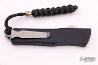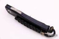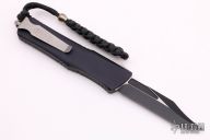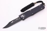 This Combat Troodon OTF automatic by Microtech knives features a black finished bowie blade, and a black aluminum handle with bead blasted hardware, tip down carry. Glass breaker. S/N 16712 Dated 1/2017. Has some light scuffs, otherwise excellent condition.