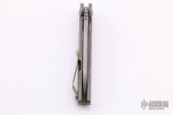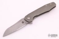 The SK45 is a sturdy frame lock knife by Smock Knives. This impressive titanium flipper knife offers easy one handed operation and a pocket-friendly build. A contoured handle paired with modest jimping offers increased comfort and heightened blade control. This SK45 model has a tumbled bronze anodized Ti handle and a stonewashed sheepsfoot blade.