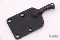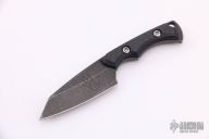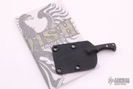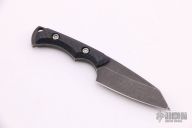 This Silverfish by Dervish knives features a dark tumble finished blade, .128" blade stock and .745" blade depth, full tang construction. The handle has carbon fiber scales.  Includes a black kydex sheath.  Light scuffs are visible on the blade.  Excellent condition.