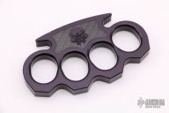 This Custom Aluminum Knuckle by Burn Knives is made from .485" thick black aluminum with carbon fiber inlays. Has some light wear on one edge, otherwise excellent condition.