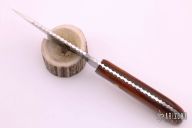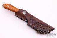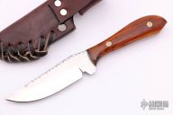 This Custom Elk Skinner by Silver Stag features a satin finished blade with fileworked spine, .138" blade stock and 1.099" blade depth, full tang construction with cocobolo scales and mosaic pins. Comes with a hand tooled brown leather sheath. Excellent condition.