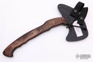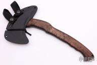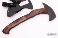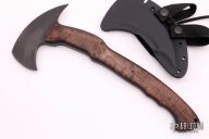 The WK RnD Axe Series is a collaborative design between Master Bladesmith Daniel Winkler and skilled Sayoc Kali martial arts trainer Rafael Kayanan. The full-size model is the most tested and highly developed axe produced by Winkler Knives, and has been proven in combat applications by a Special Operations Force Team. It is a favorite among operators and servicemen who choose their own equipment. The handle design provides a standard grip position, as well as a secondary close quarter grip that was developed to emulate the feel of a handgun grip. Axe Specifications Axe steel: 80CrV2 Black oxide no-glare finish Head length: 6" Overall length: 13 1/8" Blade thickness: 3/8" Skeletonized full tapered tang Optional Front Spike Sheath Fast draw carrier Lined Kydex® HD shockcord quick-release retention system Nylon belt straps with Mil-Spec Pull-The-Dot™ snaps Designed for multiple carry options (See our Info page for carry options) Comes with the original packaging. New from maker.