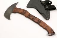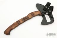 The WK RnD Axe Series is a collaborative design between Master Bladesmith Daniel Winkler and skilled Sayoc Kali martial arts trainer Rafael Kayanan. The full-size model is the most tested and highly developed axe produced by Winkler Knives, and has been proven in combat applications by a Special Operations Force Team. It is a favorite among operators and servicemen who choose their own equipment. The handle design provides a standard grip position, as well as a secondary close quarter grip that was developed to emulate the feel of a handgun grip.