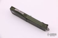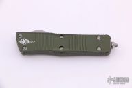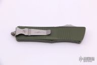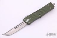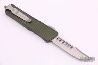 This Troodon by Microtech features a stonewash Hellhound blade with satin finished flats.  The handle has a green aluminum frame with bead blasted hardware and tip down clip. Comes with original box and papers. Dated 11/2019.  Excellent condition.