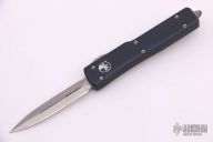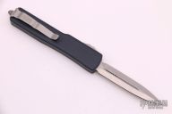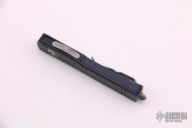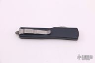 This UTX-70 OTF automatic by Microtech features a 204p stonewash finished blade with a standard edge. The handle has a black aluminum frame with blasted stainless steel tip down clip. Serial number 8897 and dated 11/2019. Comes with original box and papers. There is a small chip towards bottom of the handle otherwise the knife is in Excellent condition.