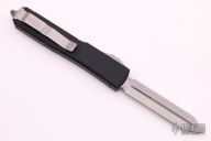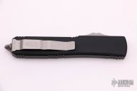 This Ultratech by Microtech features a stonewash standard double-edged blade with fullers. The handle has a contoured black aluminum frame with bead blasted stainless steel hardware. Comes with original box and papers. Excellent condition. Dated 01/2019 and s/n 110696.
