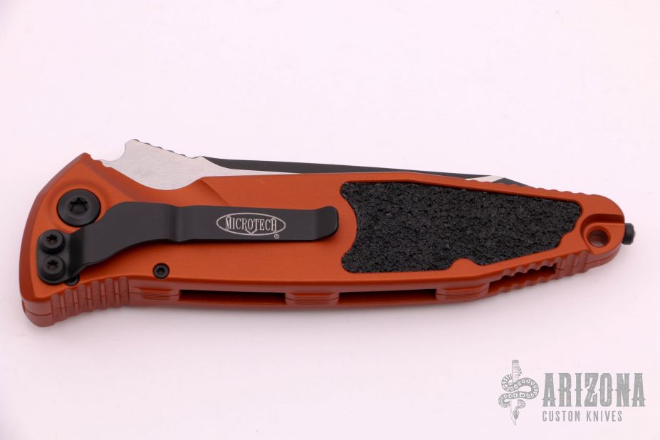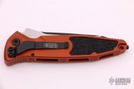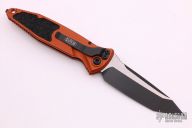 This Socom Elite Auto has a black Tanto blade with satin flats, notched thumbrest. Orange aluminum handle with non-slip inserts. Stainless steel clip, tip down carry. Glass breaker. Dated 06/2019 and s/n 3430. Comes with original box and papers. Excellent Condition.