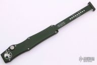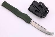 This Halo V OTF automatic has a stonewash blade with a standard edge. OD green aluminum handle. Comes with original box, papers and kydex sheath with TekLok. Dated 04/2015 and S/N 14503. Excellent condition.