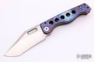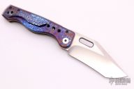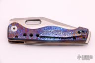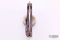 This Adder by RSK features a satin finished tanto recurve blade with thumbhole and notched thumbrest. The handle has mokuti scales, anodized titanium liners, floating titanium backspacer and a mokuti tip up clip. Nice detent, lockup and blade seating, rides on bearings. Excellent condition.