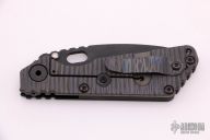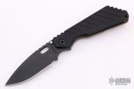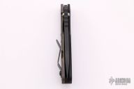 This Mick Strider SNG Fatty framelock folder features a black blade with thumbhole and notched thumbrest. The handle has a black aluminum and a flamed titanium frame with titanium clip, tip up carry. Jimping on blade spine. Nice lockup, detent, and blade seating. Has a few light scuffs, otherwise excellent condition.