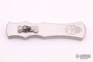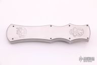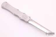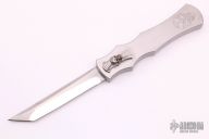 This Burn Custom Razor OTF has a mirror polished hollow ground tanto blade. The chassis is cut from 416 stainless steel with a matching thumbslide. Burn Logo is machined into the back side of the handle. Blade deploys with authority and locks up tight. This knife is marked Prototype on the blade. Has some scratches, otherwise good condition.