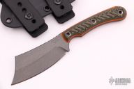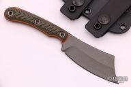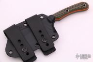 The Jackdaw is a cleaver style EDC blade that's right at home in the woods or an urban environment. The blade has a Tungsten Cerakote finish for corrosion and glare resistance. The beveled and contoured G10 grips feature diagonal texturing for a not too aggressive, but still secure grip. The Jackdaw comes with a molded kydex scabbard with two MAD straps that allow for scout-style carry (horizontal) and inside the waistband (IWB) vertical carry. It is also MOLLE compatible and can be set up to attach to PALS webbing on any pack, plate carrier, or similarly equipped gear.