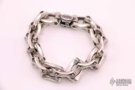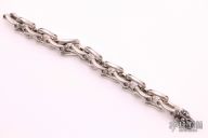 This sterling silver bracelet by Steel Flame with skulls is 9.75" in length. The clasp is a darkness skull. Overall in Excellent condition, comes with cloth bag. Scuffs and scratches are visible on the bracelet otherwise good condition.