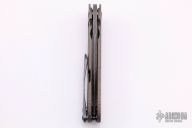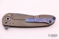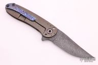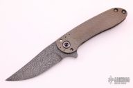 This Tailwhip V2 Flipper by Direware Custom Knives features a Mike Norris Damascus bowie ground blade with swedge and flipper. The handle is comprised of an anodized and textured titanium frame with Mokuti tip up clip, anodized pivot. Excellent condition.