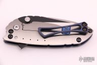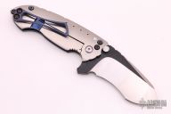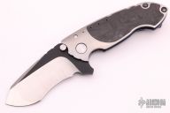 This Solo flipper from DireWare Custom Knives features a satin finished titanium frame with carbon fiber inlay, tip up or down reversible clip. Satin finished spanto style blade with black flats. Smooth function with a strong lock up, nice detent and blade seating is dead center. Comes with original box. Has a few light scratches, otherwise excellent condition.
