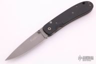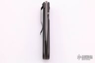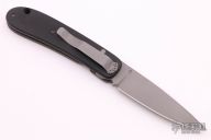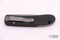 This Leopard Folder by Pat and Wes Crawford features a bead blast finished drop point blade with single thumbstud. The handle has black G-10 scales, blasted titanium liners, stainless steel backspacer, tip down blasted stainless steel clip. Has some scuffs, otherwise excellent condition.