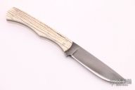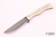 This small utility by RB Johnson features a hand rub satin finished blade with .105" blade stock and .720" blade depth, full tang construction. The handle has mammoth ivory scales. Has some light scratches, otherwise excellent condition.