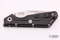 In 1988, he began making specialized knives for use by the military. This turned out to be fortunate turn of events, both for Mick and for the knife using world at large. Mick’s approach was to not get burdened by the weight of past designs. He started with a tabula rasa, a clean slate, informed only by his own experiences and knowledge of what a soldier needed in a knife. The knives he made didn’t look like the hunter-inspired knives seen in most PXs; instead they were almost brutish in their functionality: beefy, solid, and with unbreakable ¼” stock full tangs. These knives were the first indication of his innovative approach: in addition to their utilitarian design, the knives carried a subdued finish and subdued sheaths. No one carrying a Strider knife was going to be spotted because of sunlight glinting off of polished steel or a glossy leather sheath. Soldiers, policemen, and other men going into harm’s way couldn’t buy them fast enough. Mick sampled some good ideas, but made them great. For instance, he was not the first to wrap a knife handle with paracord, but he was the first to do it in a way that was tough enough for sustained infantry use. His knife line grew over the following years to include different varieties of fixed blades, all distinctive and many with specialized uses. But constant in all of them was a disregard for convention, and a desire to try new ideas. An example of this was the Ajax – it featured a very wide blade surface clearly designed to inflict damage. It drew on the weapons carried by Roman legionnaires, yet was modern and usable in the 21stCentury battlefield. Mick also worked on his technical skills, always striving to become better at the physical craft. At the 2002 Blade Show, a group of the best tactical knifemakers in the country decided to compete with each other to produce the most innovative and interesting fixed “battle blade” at the show. Mick’s entry, an incredible integral knife made out of ½” titanium stock with a zippered composite blade, gorgeous handles, and integral guard was the unanimous winner, and effectively retired the competition.