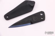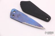 This ThumbTAC by Warren Thomas features a chisel ground, fingerprint anodized titanium blade with black G-10 laminate and a carbidized edge. 0.214" blade stock and .929" blade depth. Includes kydex sheath. Excellent condition.