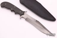 This Fox Bat by Rob Patton features a double-edged recurve blade with 0.223" blade stock and 1.295" blade depth, full tang construction. The handle has carbon fiber scales with filework on the spine of the tang. Comes with a black leather sheath and a zippered case. Has some light scratches, otherwise good condition.
