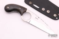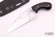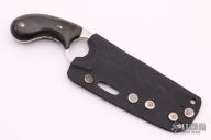 This custom version of Fred Perrin's popular La Griffe features vine file work on the blade spine and tang, and buffalo horn scales over black liners and full tang construction, .120" blade thickness and 1.214" blade depth. Perfect fit in the hand. Includes kydex sheath. Has some light scratches, otherwise excellent condition.
