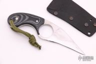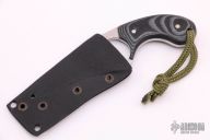 This custom version of Fred Perrin's popular La Griffe features a wharncliffe blade with notched thumbrest, and grey/black G-10 scales, full tang construction, .119" blade thickness and 1.168" blade depth. Perfect fit in the hand. Includes kydex sheath. Has some light scratches, otherwise excellent condition.