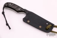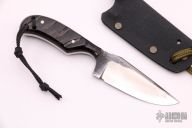 This Neck PPF from Fred Perrin features a clip point blade with swedge, visible temper line and notched thumbrest, .161" blade stock and .930" blade depth, full tang construction. The handle is comprised of big horn sheep scales with grooves and nickel silver pins. Lanyard holes at the butt. Includes kydex sheath. Has some scratches, otherwise good condition.