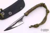 This Harpoon from Fred Perrin features a hand forged blade with hollow grind and thick tip, .221" blade stock and .762" blade depth, full tang construction. The handle is comprised of green cord wrap. Includes kydex sheath. Has some scratches, otherwise good condition.