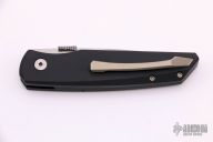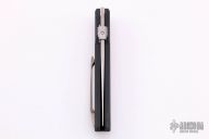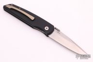 This 8801 Harkins ATAC by Pro-Tech Knives was designed by Jeff Harkins. The auto fire feature is achieved by depressing the lower corner of the first (closest to front of the handle) marble carbon fiber inlay. Manual opening is equally effective, and with dual thumbstuds can be accomplished with either hand. Closes via the linerlock. Has a black aluminum handle, marble carbon fiber inlays and a stonewashed blade. Has a bronzed tip up orange peel finished titanium clip with hidden screws. Comes with original box and papers. Excellent Condition.
