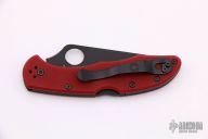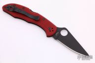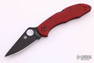 This Delica by Spyderco features black HAP40/SUS410 San Mai blade with thumbhole and notched thumbrest. The handle has red G-10 scales, stainless liners and a 4-way reversible black stainless clip. Comes with original box and papers. Excellent condition.