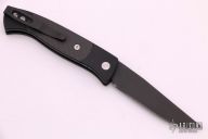 This Small Brend Auto by Pro-Tech Knives features a black blade, black aluminum frame, carbon fiber inlays and tip up black stainless steel clip. Comes with original box and papers. PR7 #596. Excellent Condition.