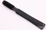 In 1988, he began making specialized knives for use by the military. This turned out to be fortunate turn of events, both for Mick and for the knife using world at large. Mick’s approach was to not get burdened by the weight of past designs. He started with a tabula rasa, a clean slate, informed only by his own experiences and knowledge of what a soldier needed in a knife. The knives he made didn’t look like the hunter-inspired knives seen in most PXs; instead they were almost brutish in their functionality: beefy, solid, and with unbreakable ¼” stock full tangs. These knives were the first indication of his innovative approach: in addition to their utilitarian design, the knives carried a subdued finish and subdued sheaths. No one carrying a Strider knife was going to be spotted because of sunlight glinting off of polished steel or a glossy leather sheath. Soldiers, policemen, and other men going into harm’s way couldn’t buy them fast enough. Mick sampled some good ideas, but made them great. For instance, he was not the first to wrap a knife handle with paracord, but he was the first to do it in a way that was tough enough for sustained infantry use. His knife line grew over the following years to include different varieties of fixed blades, all distinctive and many with specialized uses. But constant in all of them was a disregard for convention, and a desire to try new ideas. An example of this was the Ajax – it featured a very wide blade surface clearly designed to inflict damage. It drew on the weapons carried by Roman legionnaires, yet was modern and usable in the 21stCentury battlefield. Mick also worked on his technical skills, always striving to become better at the physical craft. At the 2002 Blade Show, a group of the best tactical knifemakers in the country decided to compete with each other to produce the most innovative and interesting fixed “battle blade” at the show. Mick’s entry, an incredible integral knife made out of ½” titanium stock with a zippered composite blade, gorgeous handles, and integral guard was the unanimous winner, and effectively retired the competition.