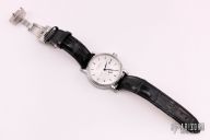 Crocodile leather strap with butterfly clasp.
