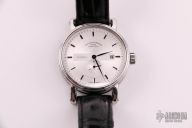 Off center - but not out of balance: The arrangement of the off-center seconds display at 6 o'clock and the Mühle logo at 12 o'clock give the dial of the Teutonia II Kleine Sekunde a particularly harmonious face. The elaborate finishing of the dial also contributes to its balance. We use this not only for decoration, but also to structure the dial and make it particularly clear. This reveals the core message of this watch family: simple elegance and down-to-earth luxury. A clear statement in everyday business life!