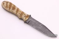This Boot Knife by Bill Reh features a Gerome Weinand Carbon Damascus blade with notched thumbrest, .193" blade stock and .884" blade depth, full tapered tang construction. The handle has bookmatched sheeps horn scales with nickel silver pins. New from maker.
