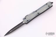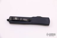 This UTX-70 OTF automatic by Microtech features a black double-edged blade with a standard edge. The handle has a Jade Green G10 top and a black aluminum bottom with black stainless steel tip down clip. Serial number 9059 and dated 12/2019. Comes with box & original papers. Excellent condition.