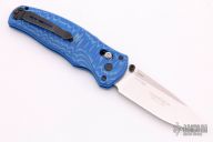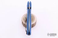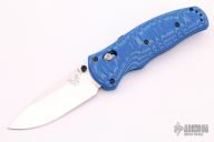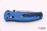 This 1000001-1601 Volli by Benchmade features a stonewashed drop point blade with swedge and dual thumb studs. The handle is comprised of carved and contoured blue/grey G-10 scales over a black coated steel sub frame and notched black G10 backspacer. Sliding safety on spine. Assisted opening with AXIS lock. Excellent condition. Comes with original box and papers. Limited edition 586/750