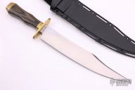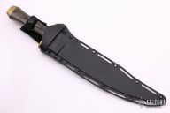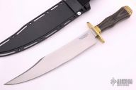 "Under-The Hill" was the notoriously rowdy riverfront district of Natchez, Mississippi at the beginning of the nineteenth century. So disreputable, it was seldom mentioned in the polite drawing rooms of the antebellum mansions that dotted the other side of town during the era when cotton was king. Our Natchez Bowie was born "Under-The-Hill" and takes its pedigree from those seedy taverns and dimly lit streets. Line-bred for battle, it’s the definitive fighting Bowie. Its long blade is perfectly shaped for strength, reach and leverage, and its significant heft is flawlessly balanced, giving it unparalleled liveliness and velocity. Combine all that with its wickedly razor sharp edge and you have a knife that pierces like a dagger, cuts like a razor and chops like a cleaver! The very best in materials and workmanship is what makes performance like this possible. The blade is made of 01 Tool Steel. The handle also plays a big role in the overall performance. It has a double quillon guard, bolster, and pommel made of brass and wood grip. It will easily accommodate a wide variety of gripping methods while serving as a very formidable impact weapon as well. To complement the Natchez Bowie and to further cement its position as the quintessential fighting Bowie, it comes with a Secure-Ex sheath with belt loop and a zippered case. Excellent condition.