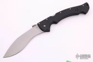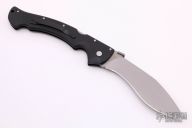 The Rajah folders, designed by Andrew Demko, are big enough to approximate the feel and heft a fixed blade Kukri. Their broad, downward curved blades exhibit the best of a Kukri’s characteristics. First, their unique shape presents their thin, hollow ground edges at just the right angle so they naturally bite deep instead of bouncing or skidding off. And secondly their points are thick, wide and sharp enough to pierce even the toughest targets.