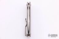The Caly 3, has converted legions of knife buyers to the hard-use benefits of flat-ground leaf-shaped blades. This Caly 3 comes with a Plain Edge that is ground flat for precise cutting. The handle’s shape settles the index finger on the underside and thumb naturally above on the jimped (slip resistant) spine so the knife feels like part of the hand with controlled grip and no forward or backward slide while cutting. Ambidextrous deep-pocket-carry tip-up wire clip. Mid-positioned backlock.