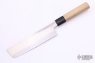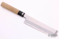 This Usuba from Shinichi Watanabe features a stainless clad blue steel blade with a hidden tang construction. .135" Blade Stock. 1.76" Blade Depth. The handle features horn hilt nicely complemented by a Ho wood grip. This is a fantastic piece that is razor sharp. New from Maker.