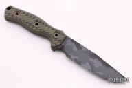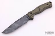 This Mega Ratmandu by Swamp Rat Knives features an Urban Multicam clip point blade with a deep hollow grind, .355" blade stock and 1.373" blade depth, full tang construction. The handle has black/green G-10 scales with a lanyard hole at the butt. Excellent condition. The Urban Multicam is an Arizona Custom Knives Exclusive!