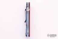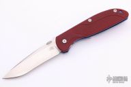 This Firetac by Hinderer features a drop point recurve stonewashed blade. The handle has a textured red G-10 scale and tumbled and anodized titanium frame, matching pocket clip is reversible. The circular thumb stud is removable; there is a lanyard hole at the bottom. Excellent Condition. Comes with original box and extra hardware.