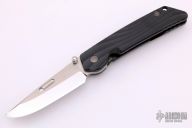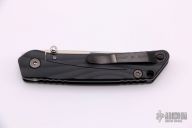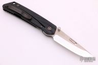"The blade is convex on both sides in the tradition of the highly praised Japanese sword. This shape is both sharp and strong, and can still slice paper even after the 1,000 of hemp rope cuts. Using this blade form is one superb method of making an edge thick without losing of its sharpness. This is a knife of preeminent sharpness. You can enjoy its strong cutting capabilities for a long time. Even if used for rigorous cutting, the blade will not bite thanks to its convex shape. Other knives often will bite, and may nick if it is pulled out suddenly at that time. This knife scratches the plate of china. Please do not use it to cut food on the plate." The handle is sculpted black aluminum and tip up black stainless steel clip. Comes with original box and papers. #684on blade. Excellent condition.